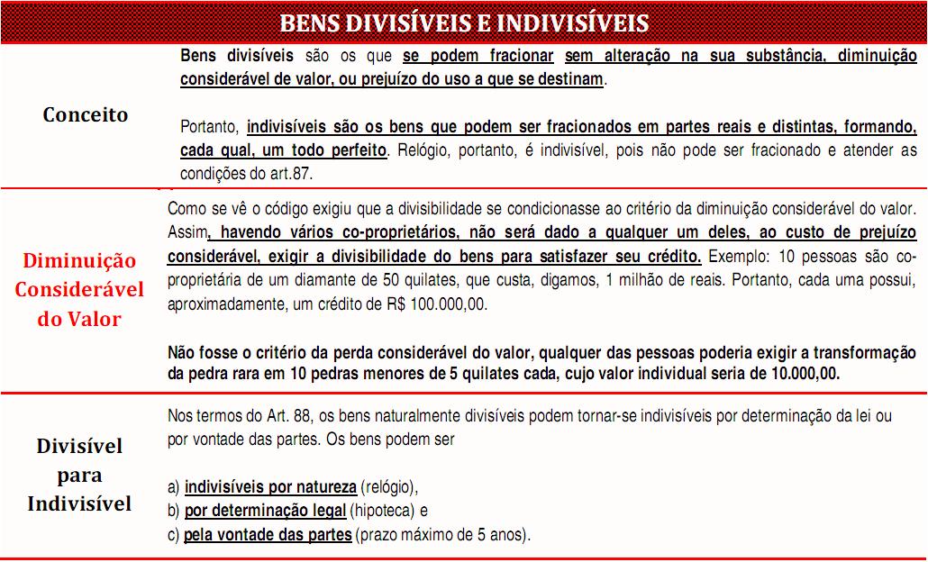 Mais um dos ótimos esquemas sobre bens. Material imperdível, pois é feito de forma esquematizada para você aprender de vez! Hoje temos os bens singulares ou coletivos e bens divisíveis e indivisíveis.